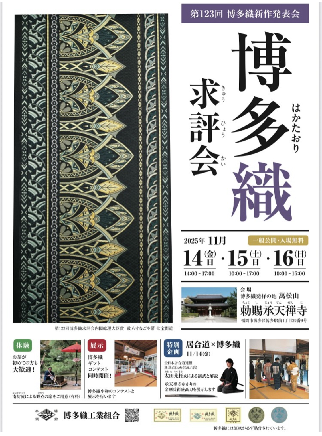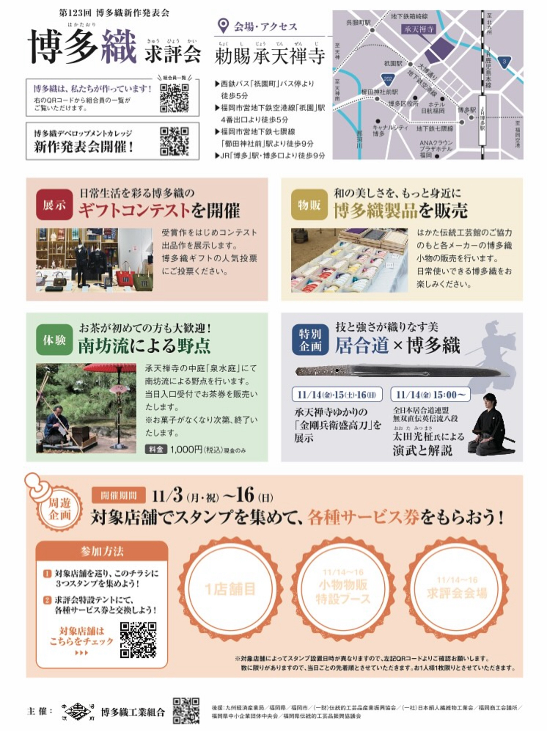会場は博多駅近くの承天禅寺、各織元・作家の新作発表会です