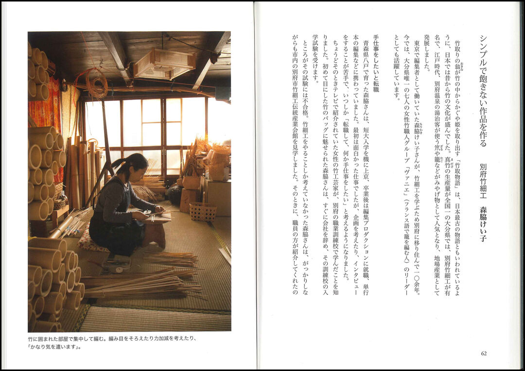東京で編集者として働いていた森脇けい子さんが、竹細工を学ぶため別府に移り住んで十余年。大分県唯一の七人の女性竹職人グループ「ヴァニエ」(フランス語で籠を編む人)のリーダーとしても活躍しています。